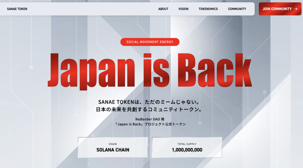 SANAE TOKEN($SANAET)は、Solana上で取引されるPolitiFi系トークンで、政治トピックとコミュニティ熱量で価格が動きやすいタイプのコインです。